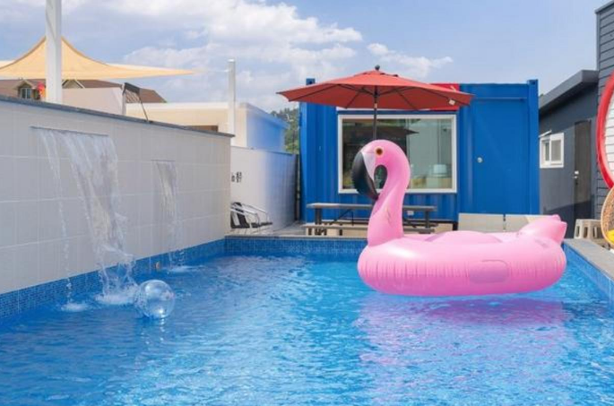 - 부대시설 : 야외수영장(이용시간: 14:00~19:30 / 수심: 90cm / 복장: 수영복, 래시가드), 풀빌라